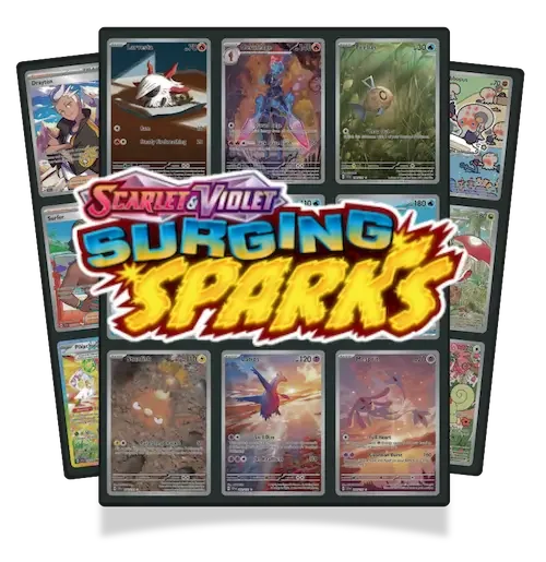 Surging Sparks is the eighth main expansion in the Scarlet & Violet era. This set introduced a lot of new fan-favorite cards like the Stellar Tera Pikachu ex and other incredible artworks. Explore our complete SV08 visual card list, organized by rarity for easy browsing, plus we’ve included our Surging Sparks Master Set Guide and a quick peek at the top Chase Cards from this set.